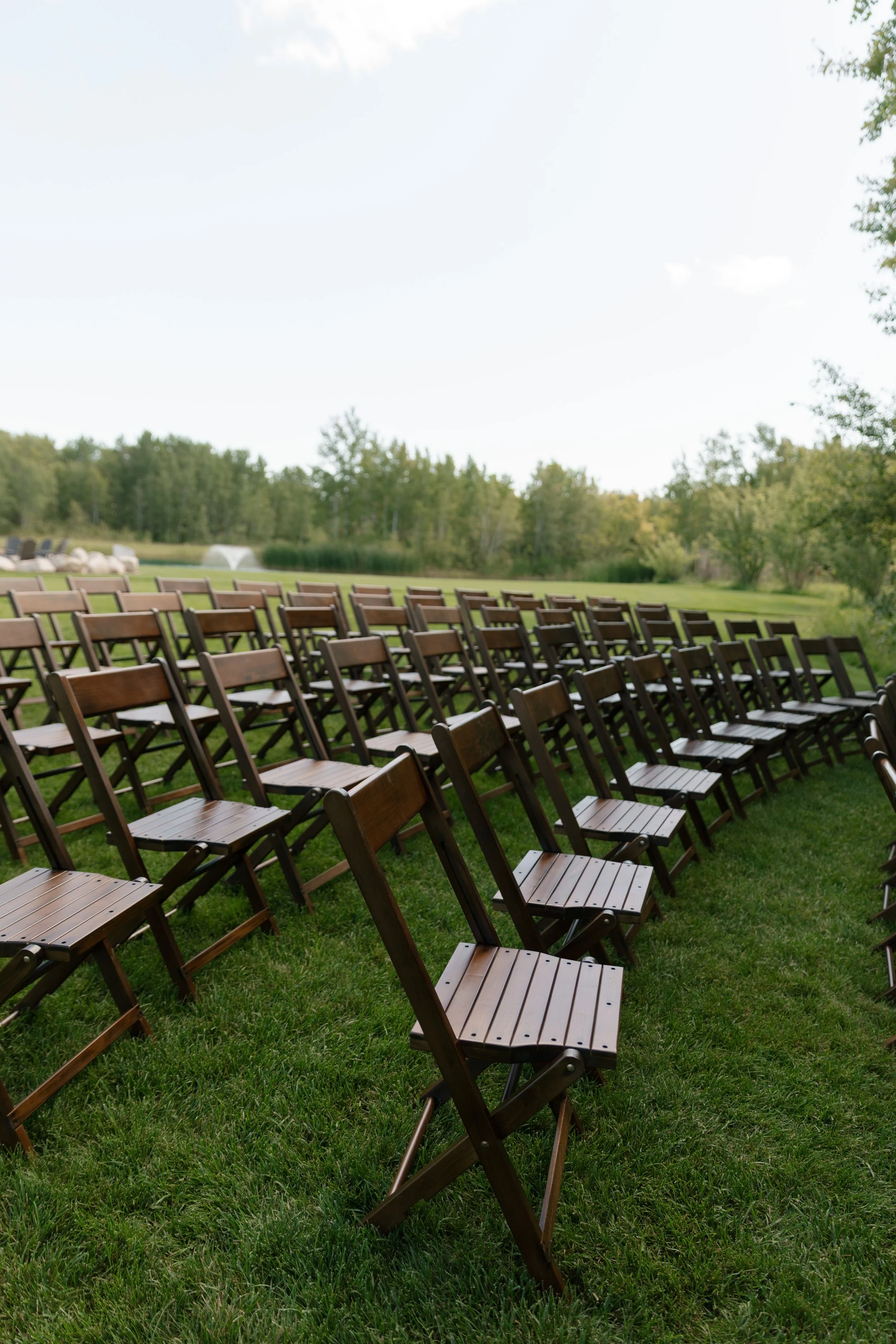 There are 10 Adirondack chairs around the firepit, as well as rocks that are the perfect height for extra seating.
